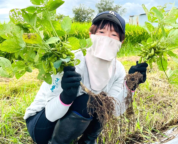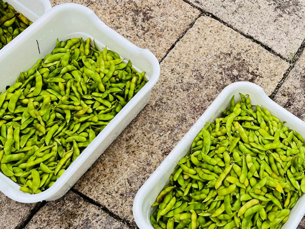 またこの時を狙ったかのような枝豆の実りで、もぎたて、湯がきたての枝豆を食べて頂き、
