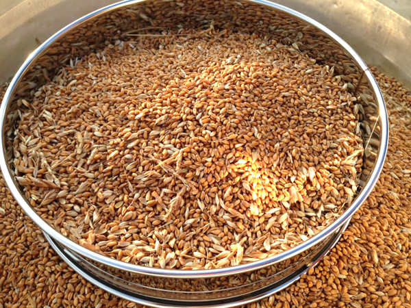 収穫した小麦は時間を掛けてゴミを取り除いて